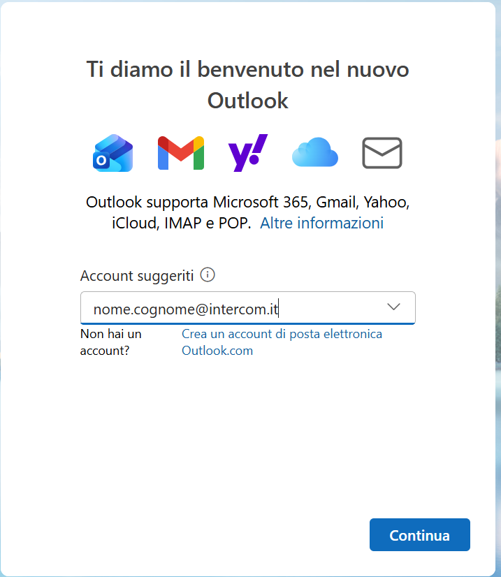 Si presenterà una casella dove sarà possibile digitare il proprio indirizzo email completo: nome.cognome@intercom.it