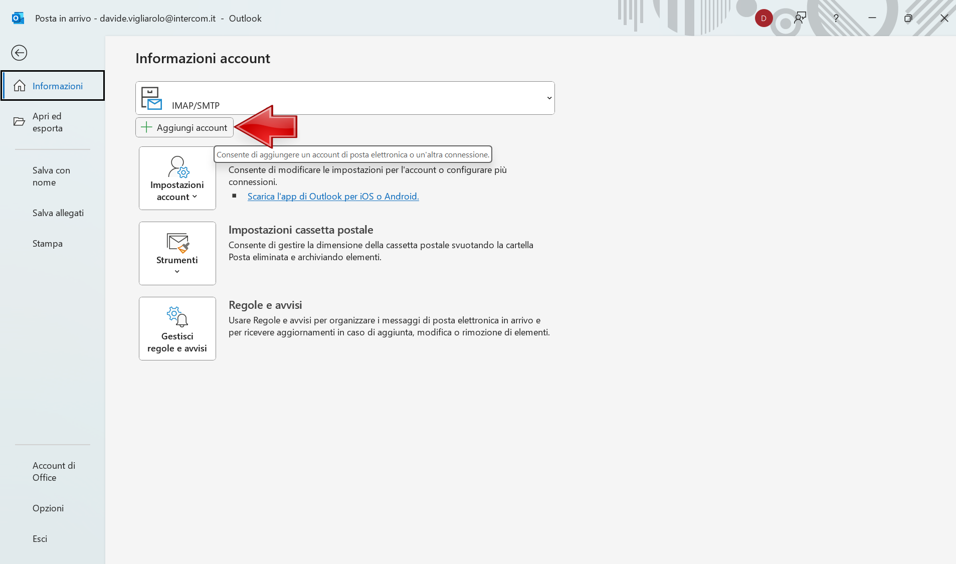 Configurazione casella email - Outlook Classic | Intercom